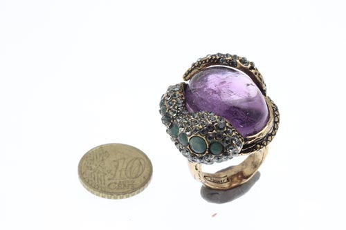 Bague Unic en laiton, Améthyste et Émeraude