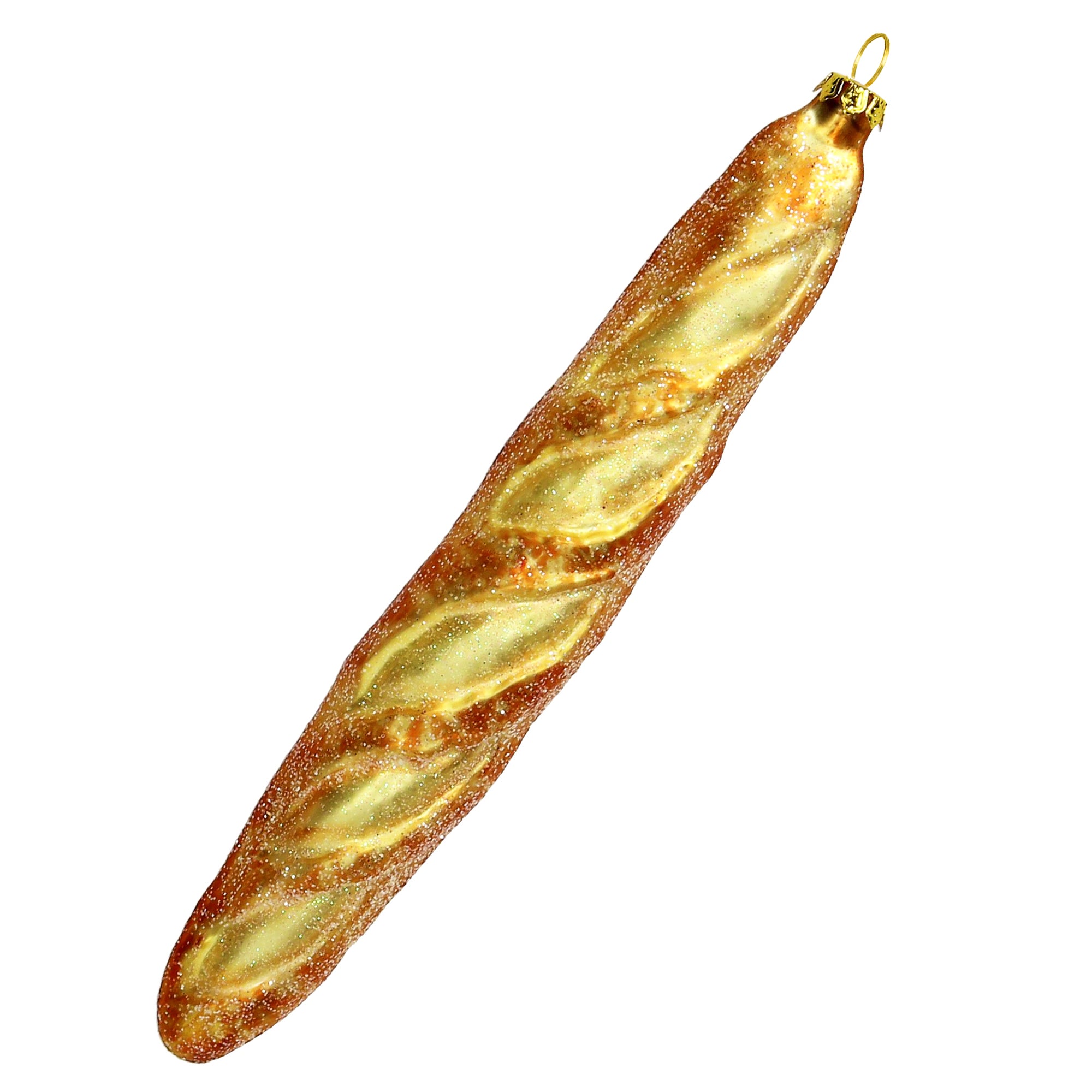 Baguette en verre soufflé – décoration de Noël à suspendre – brun et doré – 21 cm