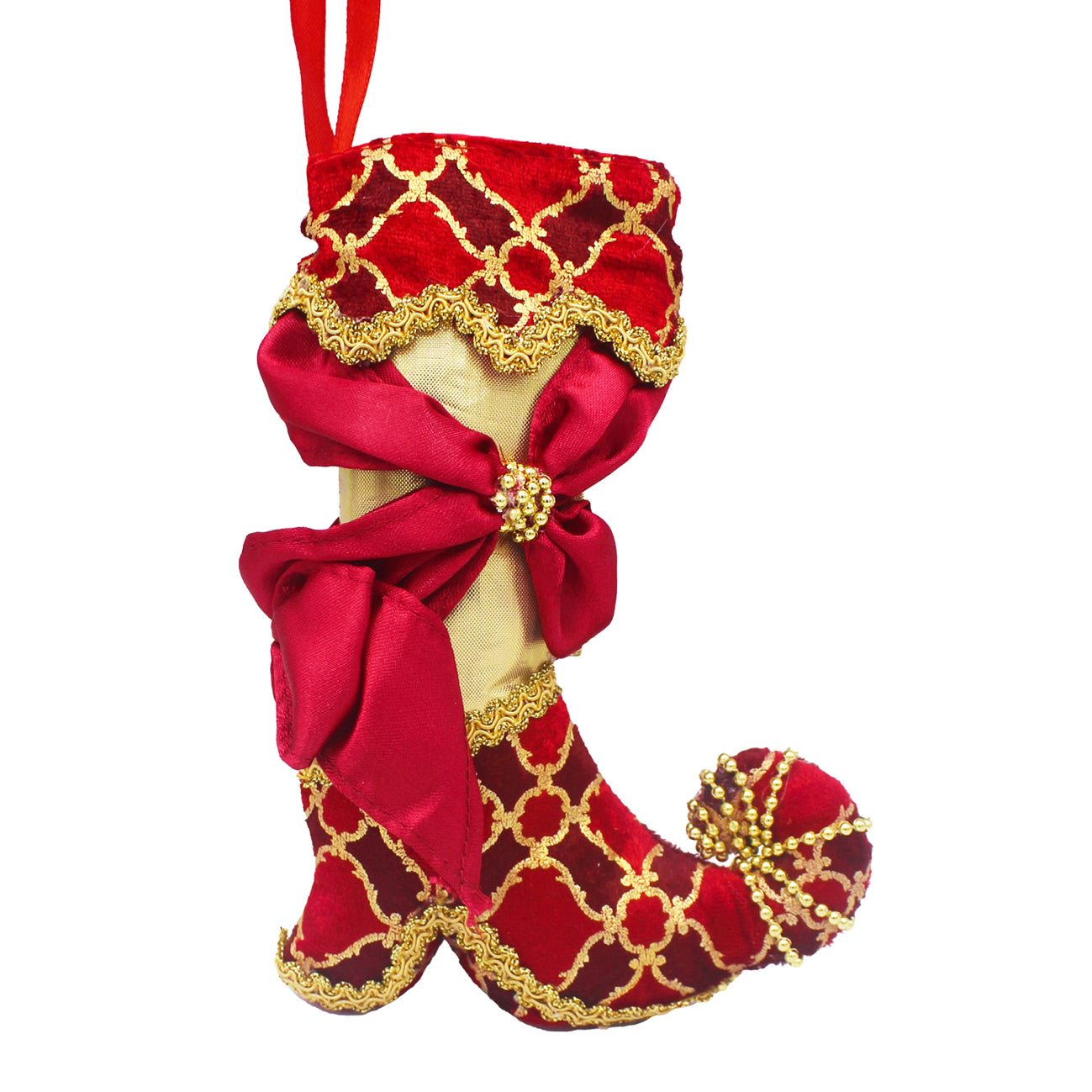 Création de La Maison du Roy – Botte de Noël – décoration de Noël à suspendre – rouge et dorée – 17 cm