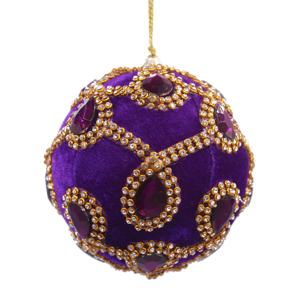 Boule de Noël en velours – décoration de Noël à suspendre – violette et dorée – 10 cm