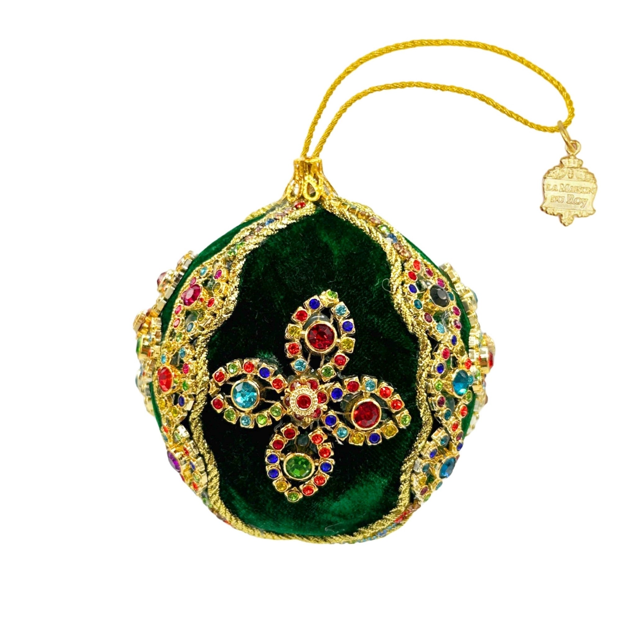 Faites briller votre sapin avec cette somptueuse boule de Noël en velours vert profond, magnifiquement décorée de pierres multicolores et d’élégants motifs dorés. Véritable bijou artisanal, elle combine éclat et raffinement pour sublimer votre décoration festive. Accrochée à son cordon doré avec médaillon raffiné, cette boule est idéale pour créer une ambiance luxueuse et féérique dans votre intérieur.