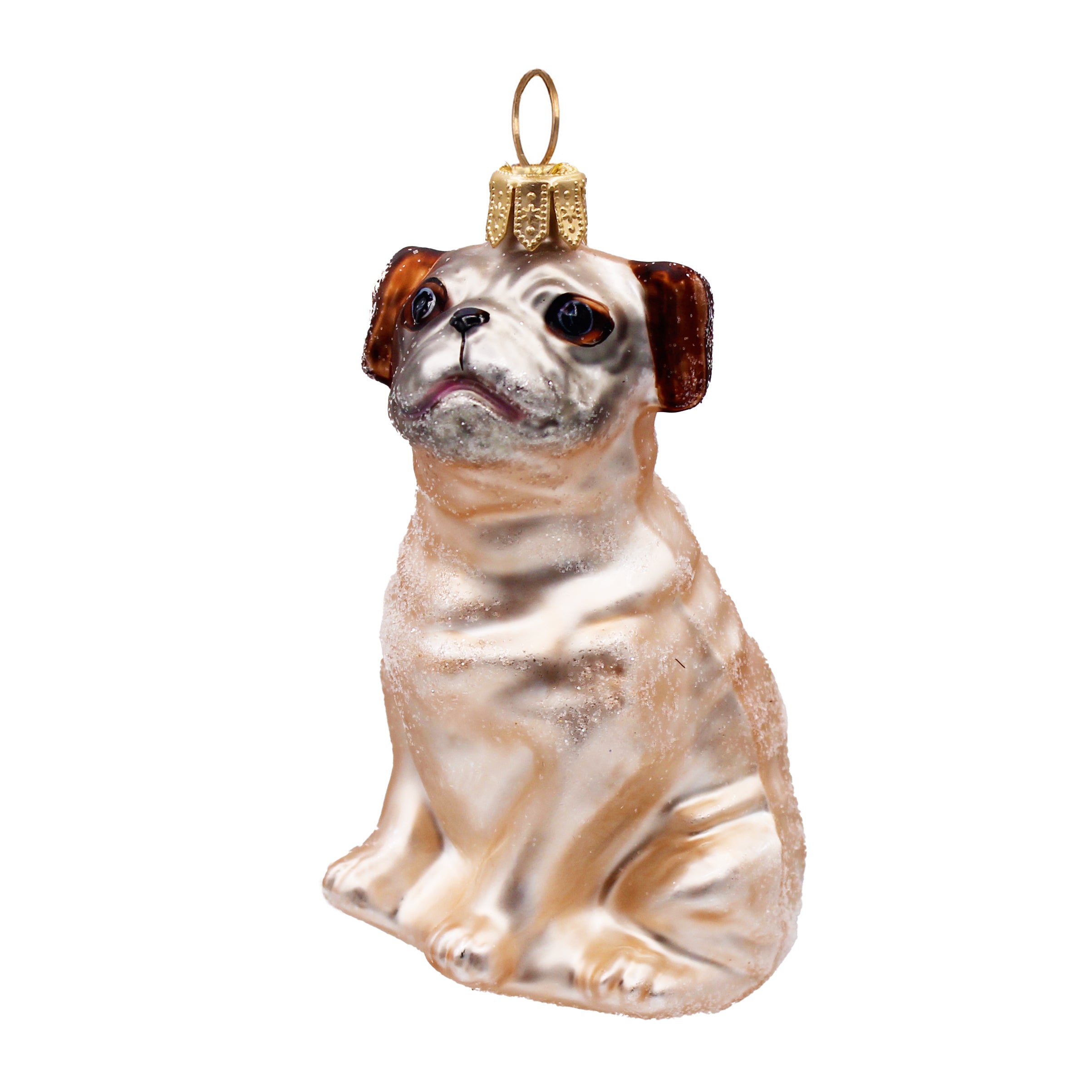 Boxer en verre soufflé – décoration de Noël à suspendre – rose et brun – 12 cm