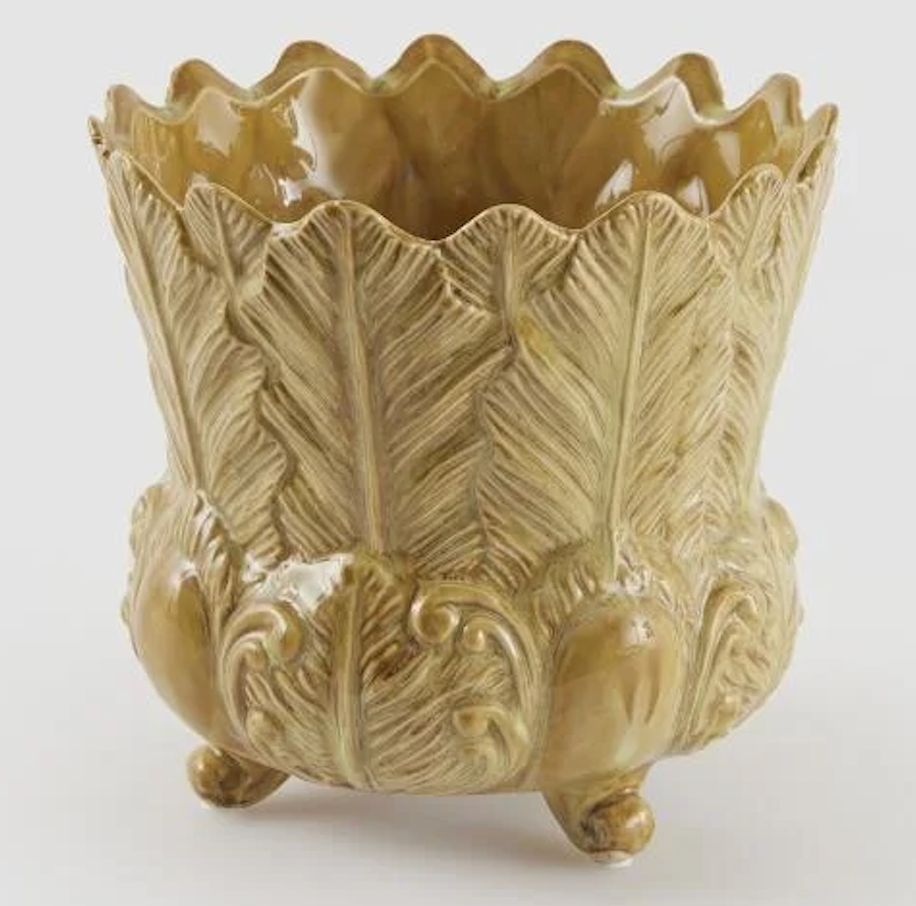 Cache-pot vert olive feuilles 16,5cm