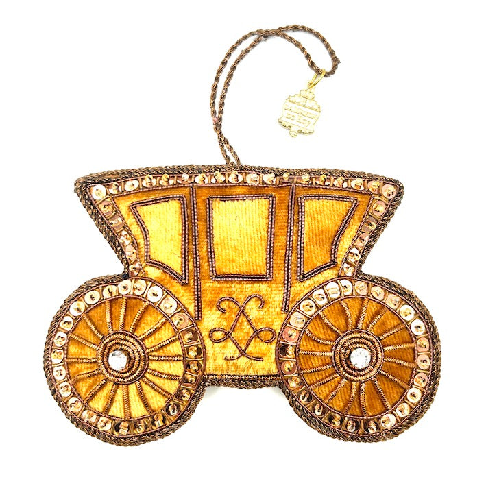 Création de La Maison du Roy – Carrosse brodé à la main – ornement à suspendre – doré et doré antique – 13 cm