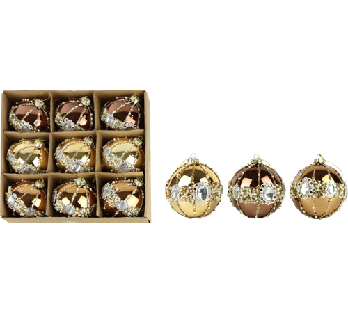 Boule en verre dorée et strassée