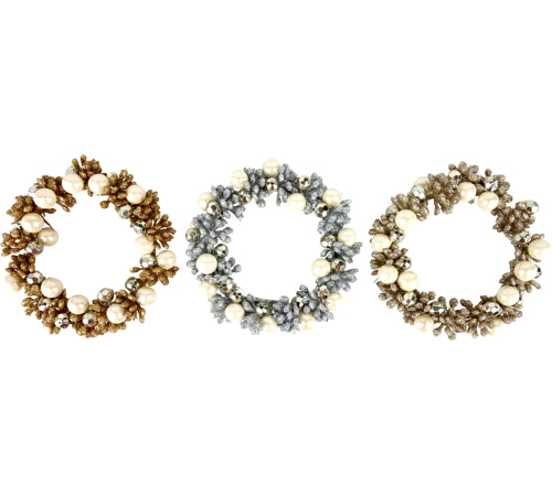 Tour de bougie dorée/argent/champagne et perles 11X2cm