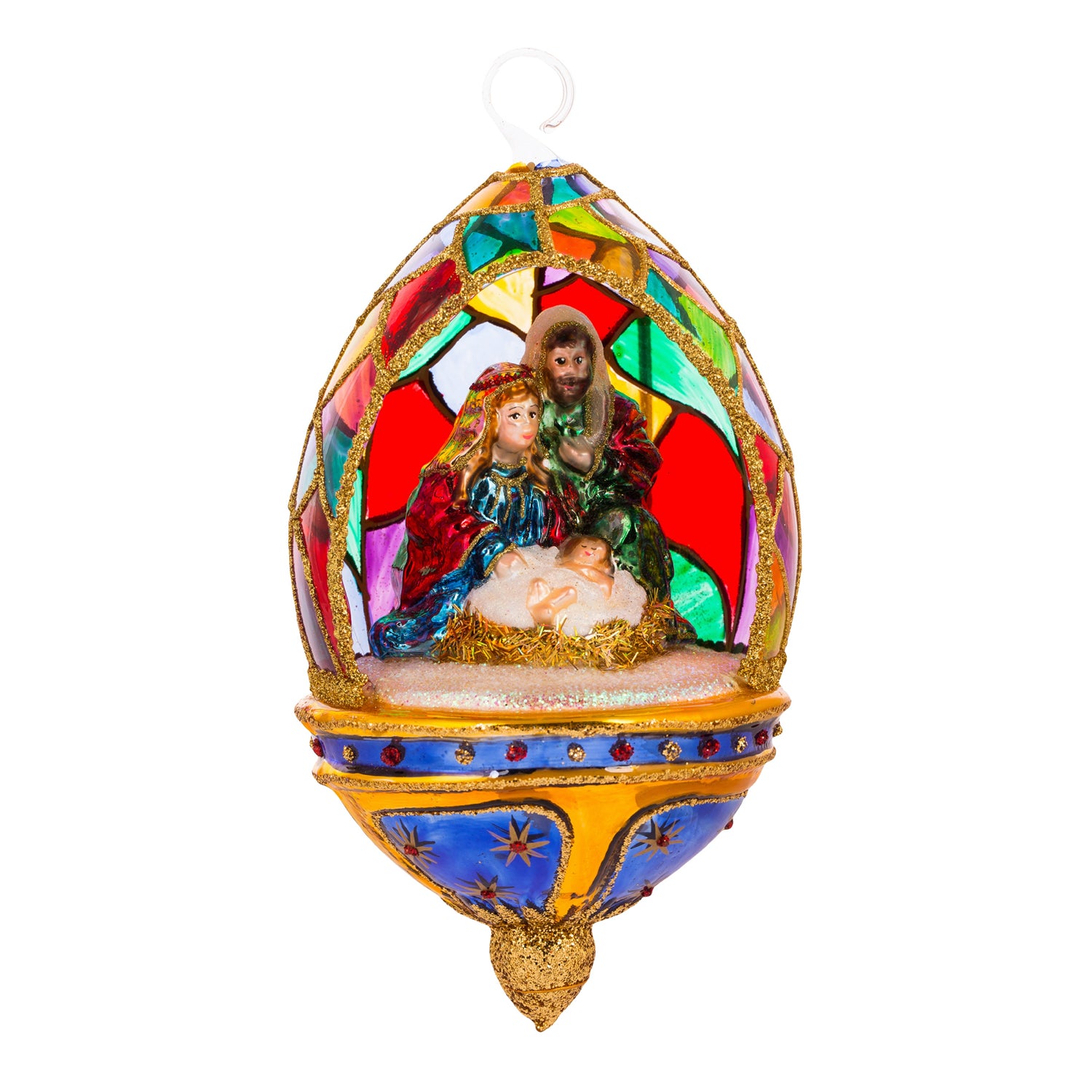 Création Huras Family – Crèche dans un dôme en vitrail – décoration de sapin en verre soufflé – 17 cm
