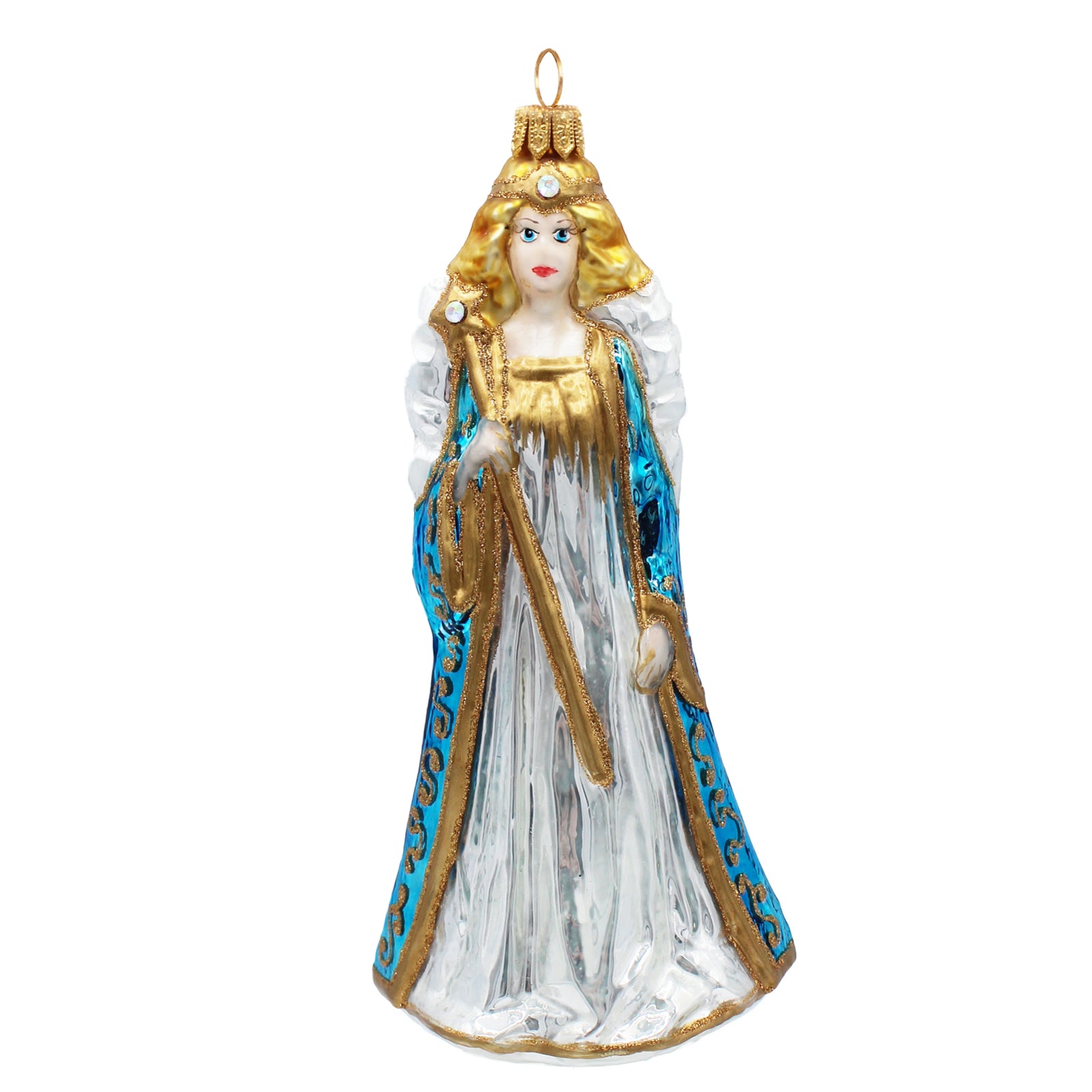 Fée avec sa baguette – décoration de Noël en verre soufflé – bleue et dorée – 13 cm