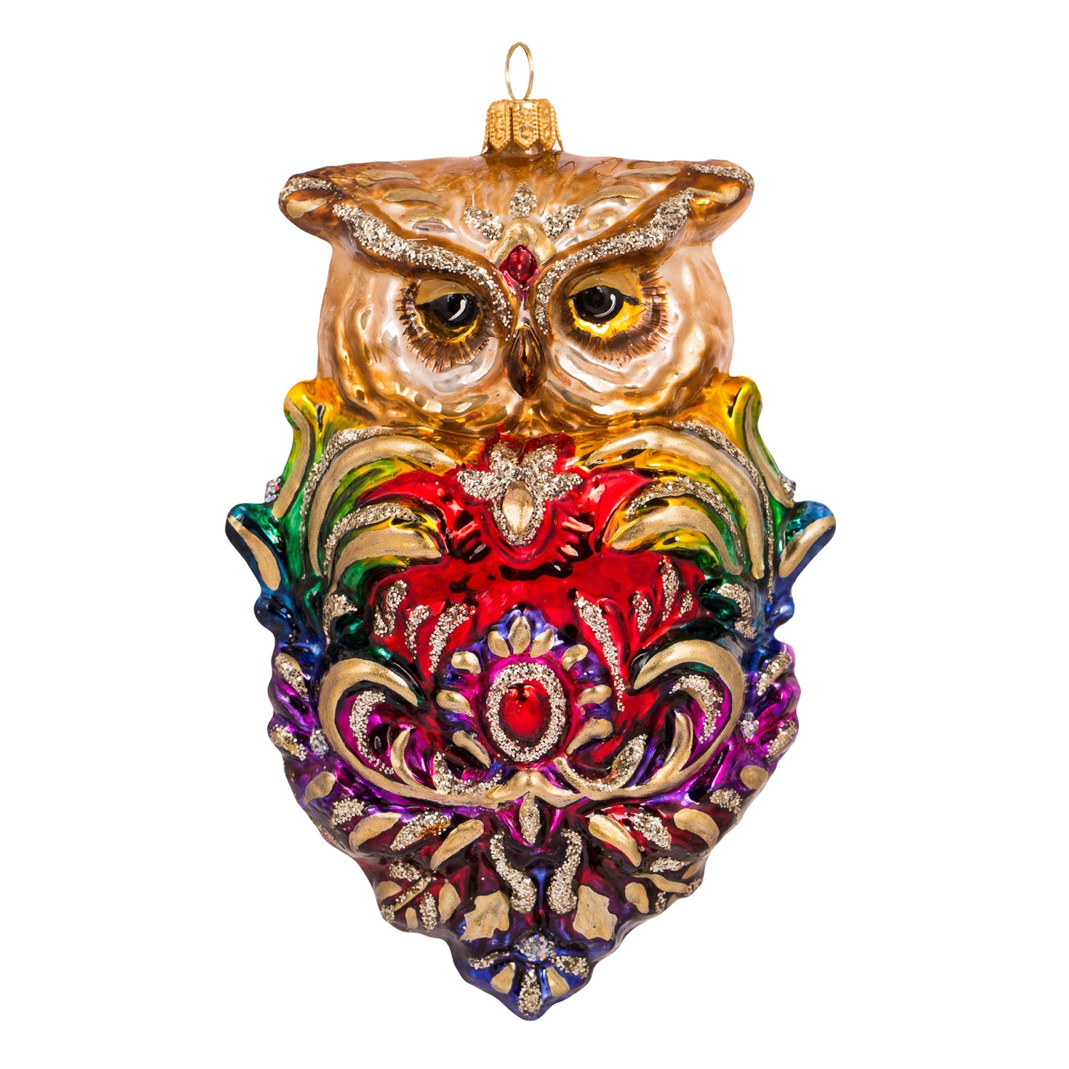 Création Huras Family – Hibou royal – décoration de sapin en verre soufflé – 15 cm