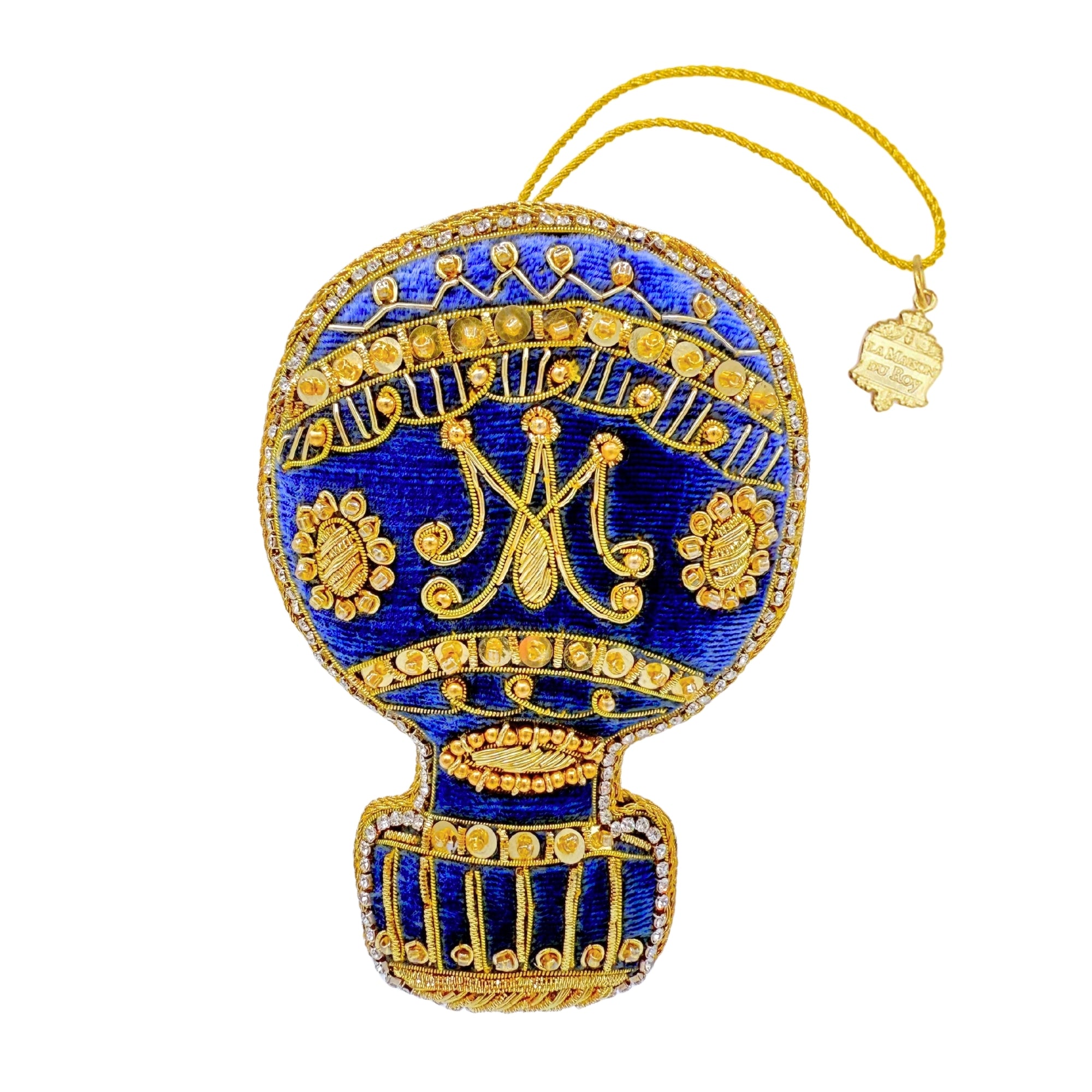 Montgolfière strassée monogrammée MA - bleue gris et dorée