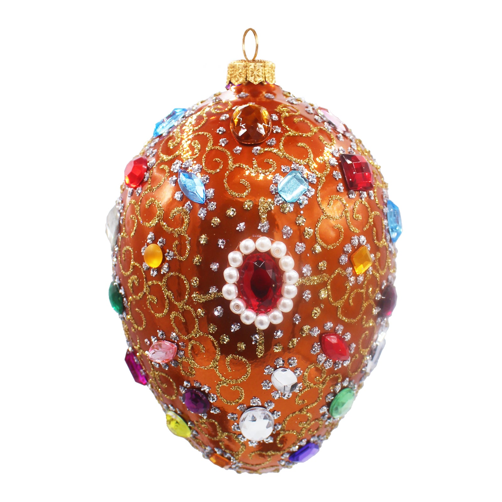 Œuf en verre soufflé – décoration de Noël en verre soufflé – cuivré et doré – 13 cm