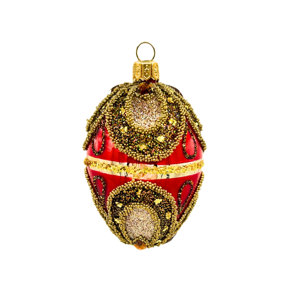 Petit œuf en verre soufflé – décoration de Noël en verre soufflé – rouge et doré – 8 cm