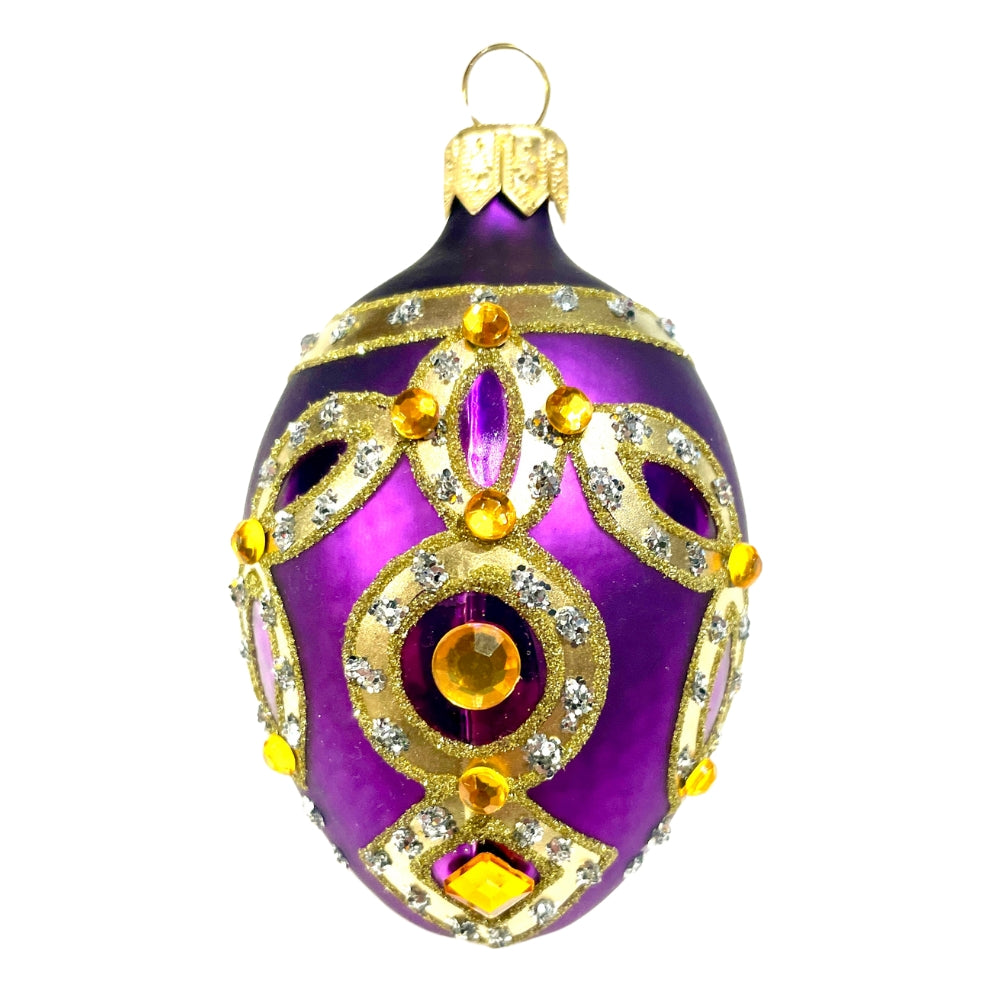 Œuf en verre soufflé – décoration de Noël en verre soufflé – violet et doré – 8 cm