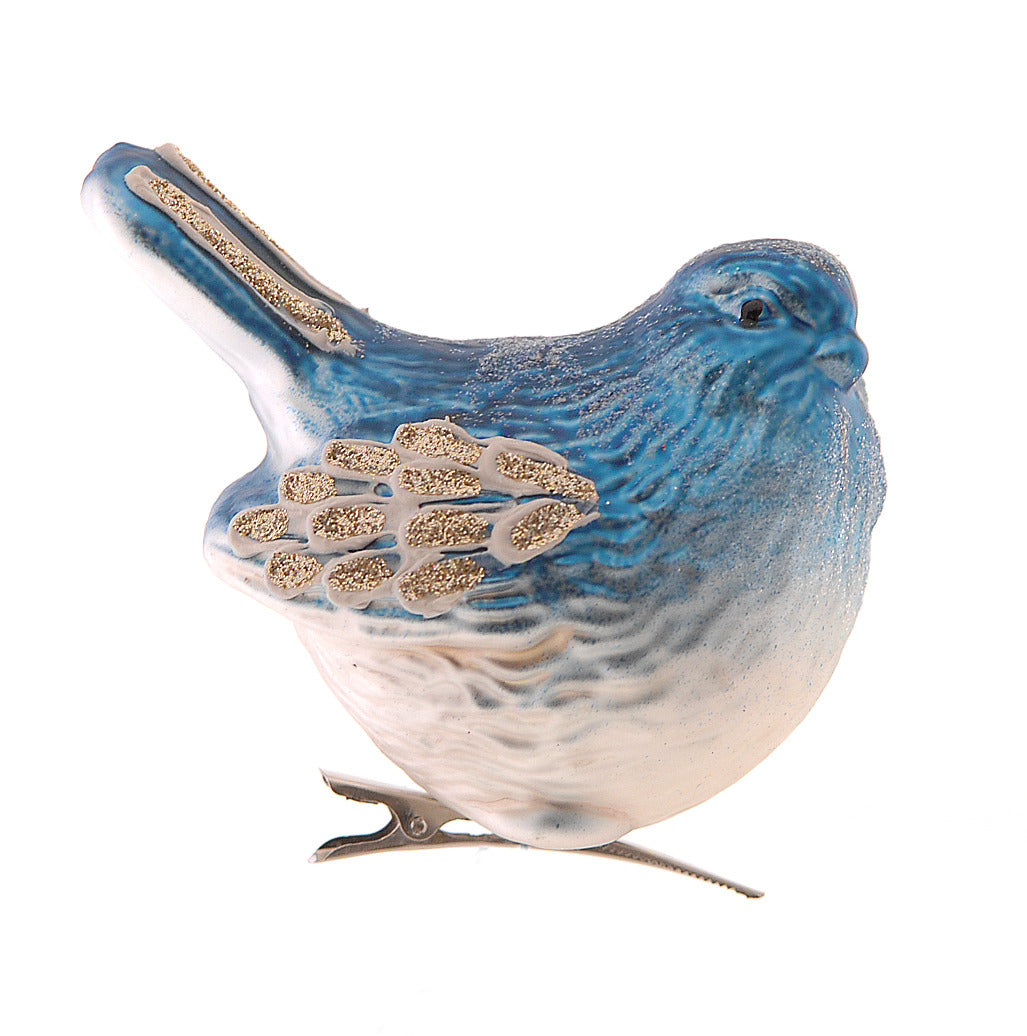 Oiseau en verre bleu et détails dorés 10 cm