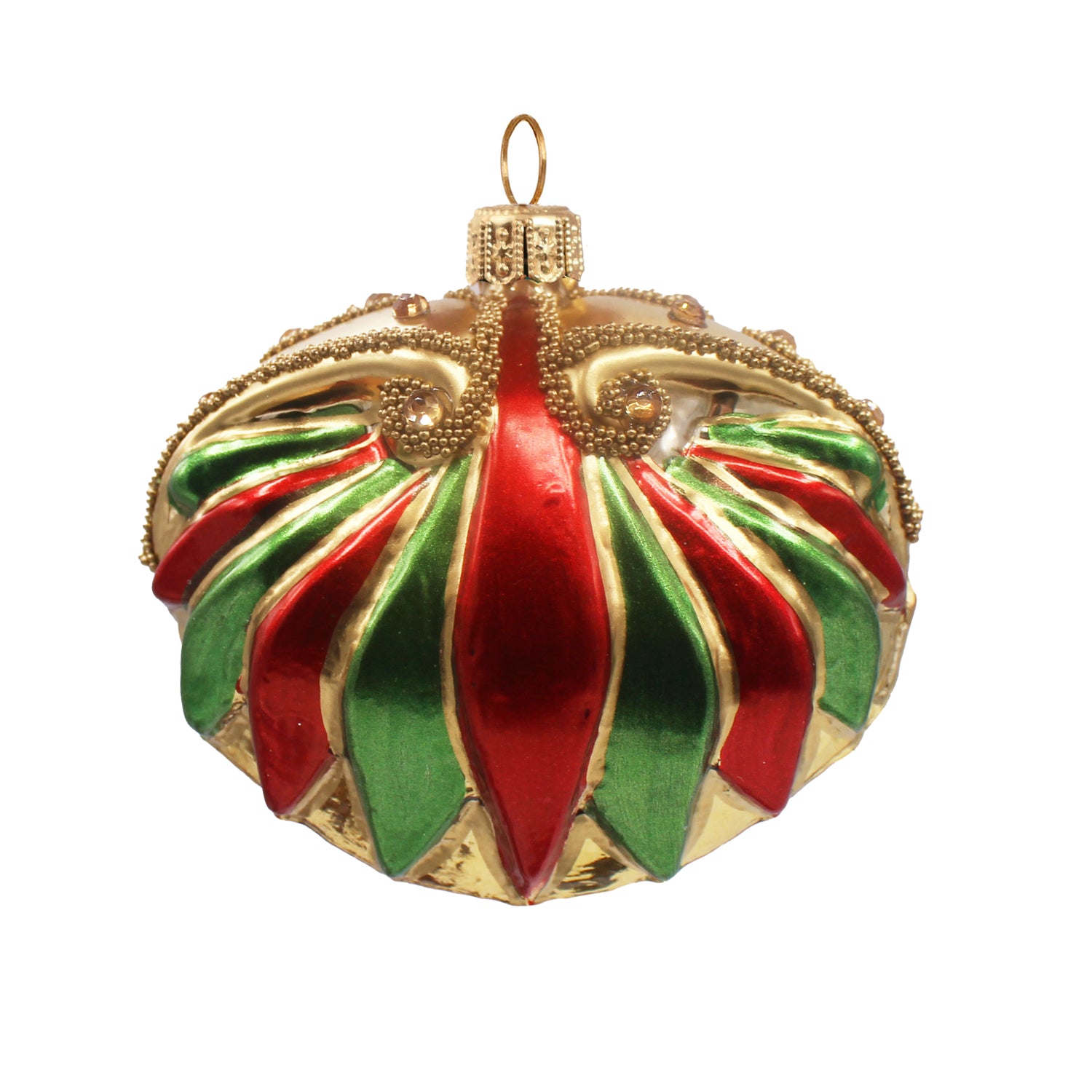 Ornement baroque en verre soufflé – décoration de Noël en verre soufflé – rouge, vert et doré – 13 cm