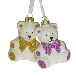 Ours blanc portant un noeud à pois 8 cm