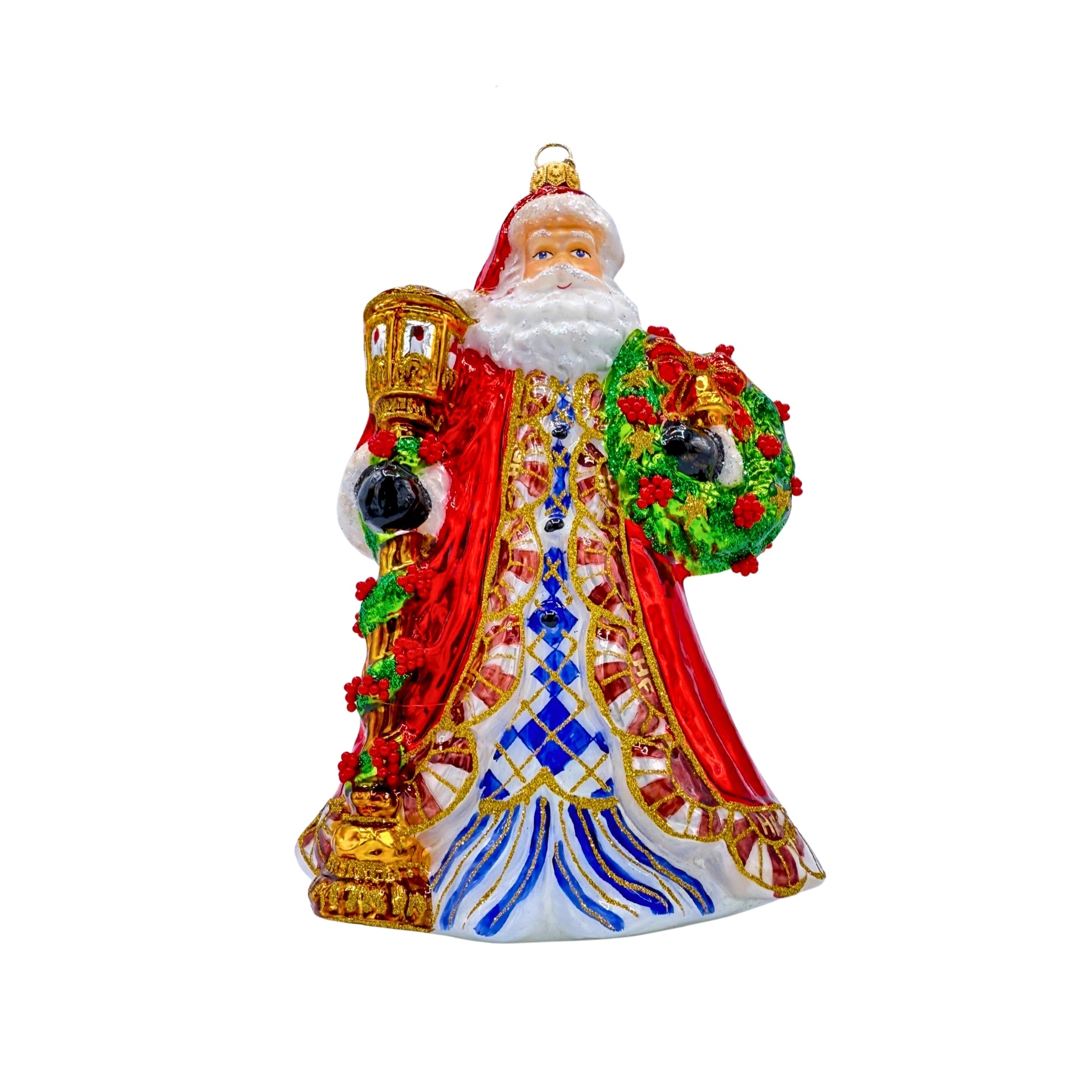 Père Noël avec sa lanterne et sa couronne en verre soufflé
