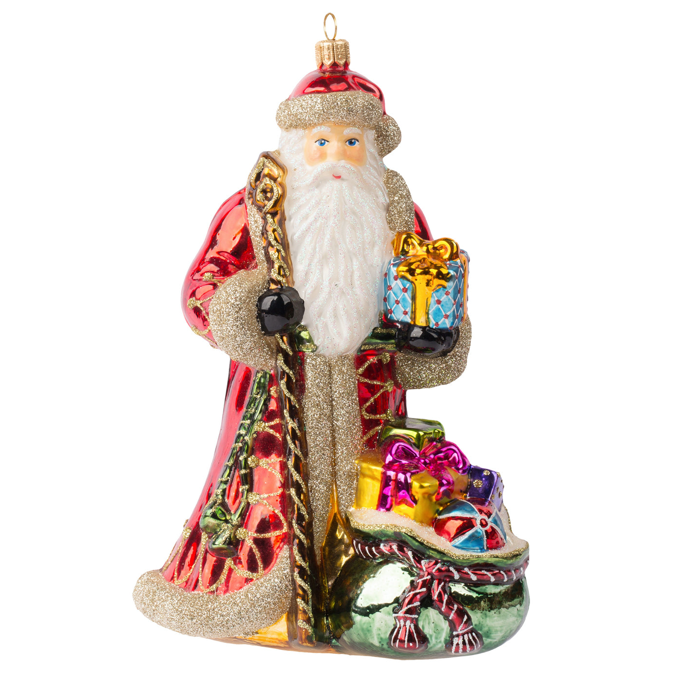 Création Huras Family – Père Noël et sac de cadeaux – décoration de sapin en verre soufflé – 17 cm