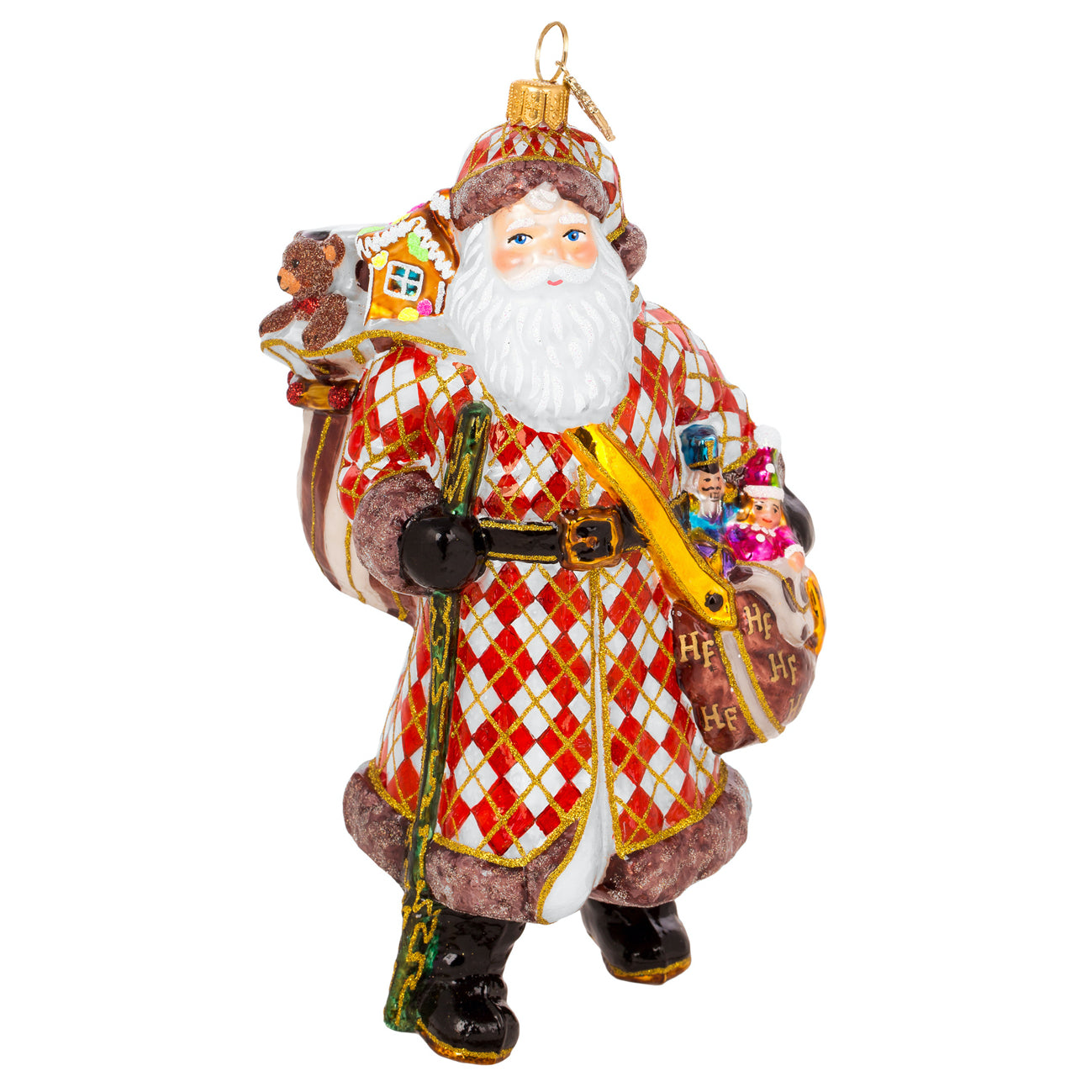Création Huras Family – Père Noël voyageur – décoration de sapin en verre soufflé – 9 cm
