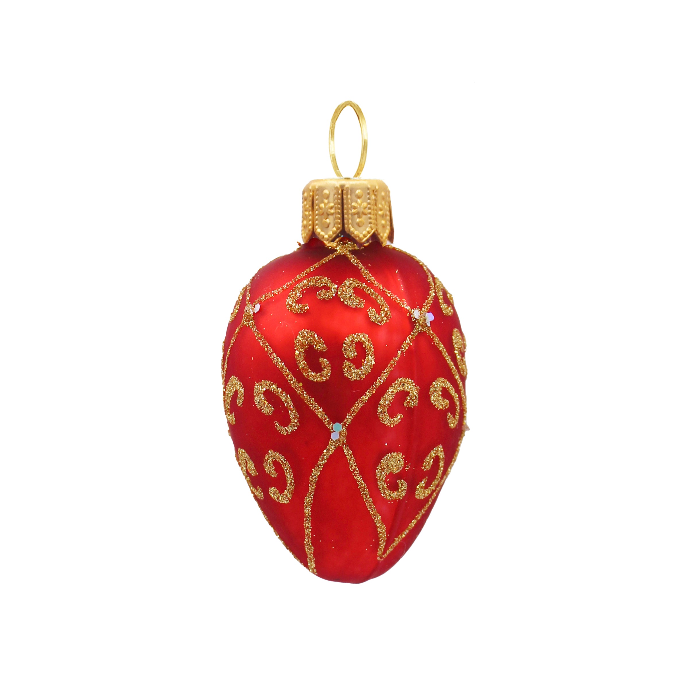 Petit œuf en verre soufflé – décoration de Noël en verre soufflé – rouge et doré – 6 cm