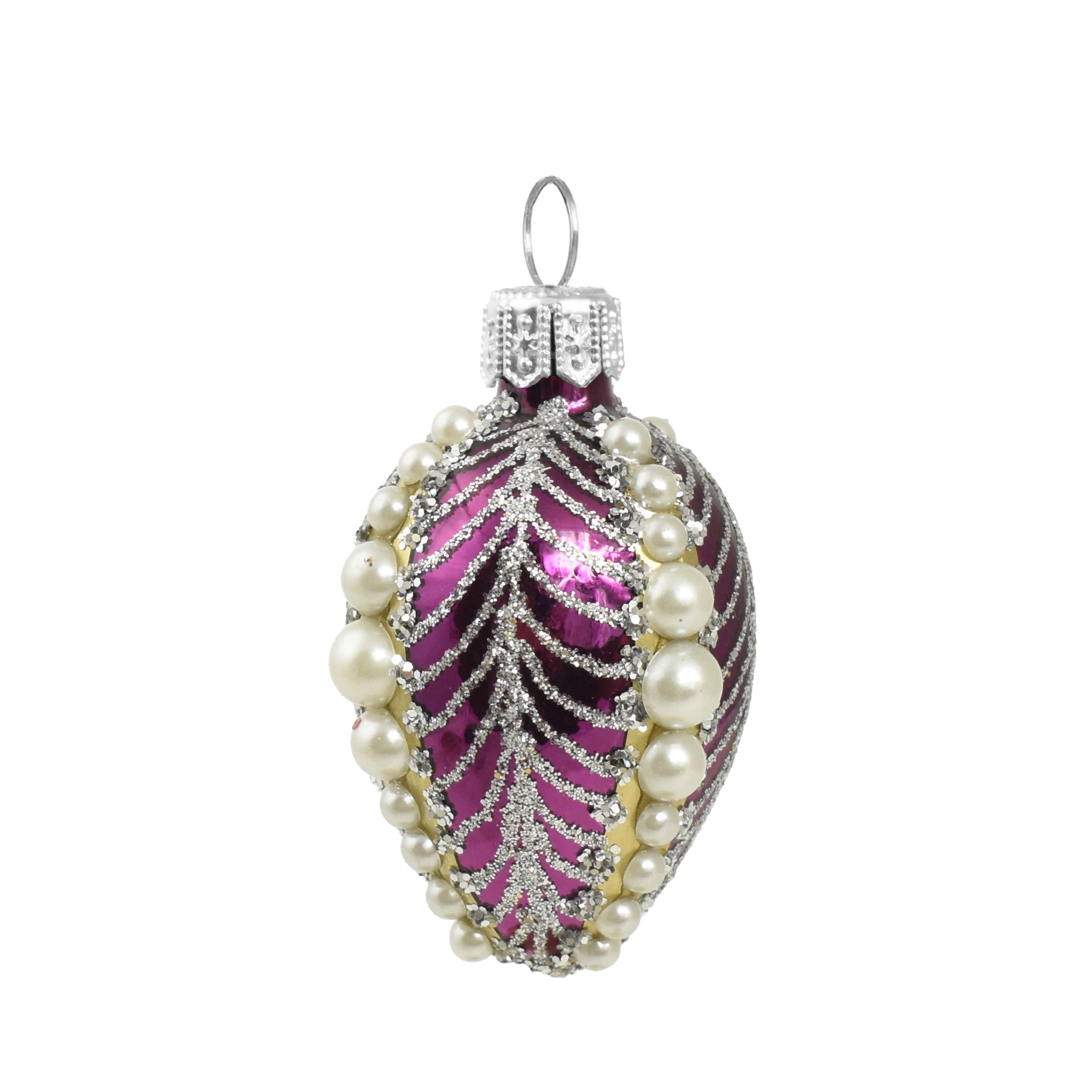 Petit œuf en verre soufflé – décoration de Noël en verre soufflé – violet et argenté – 6 cm