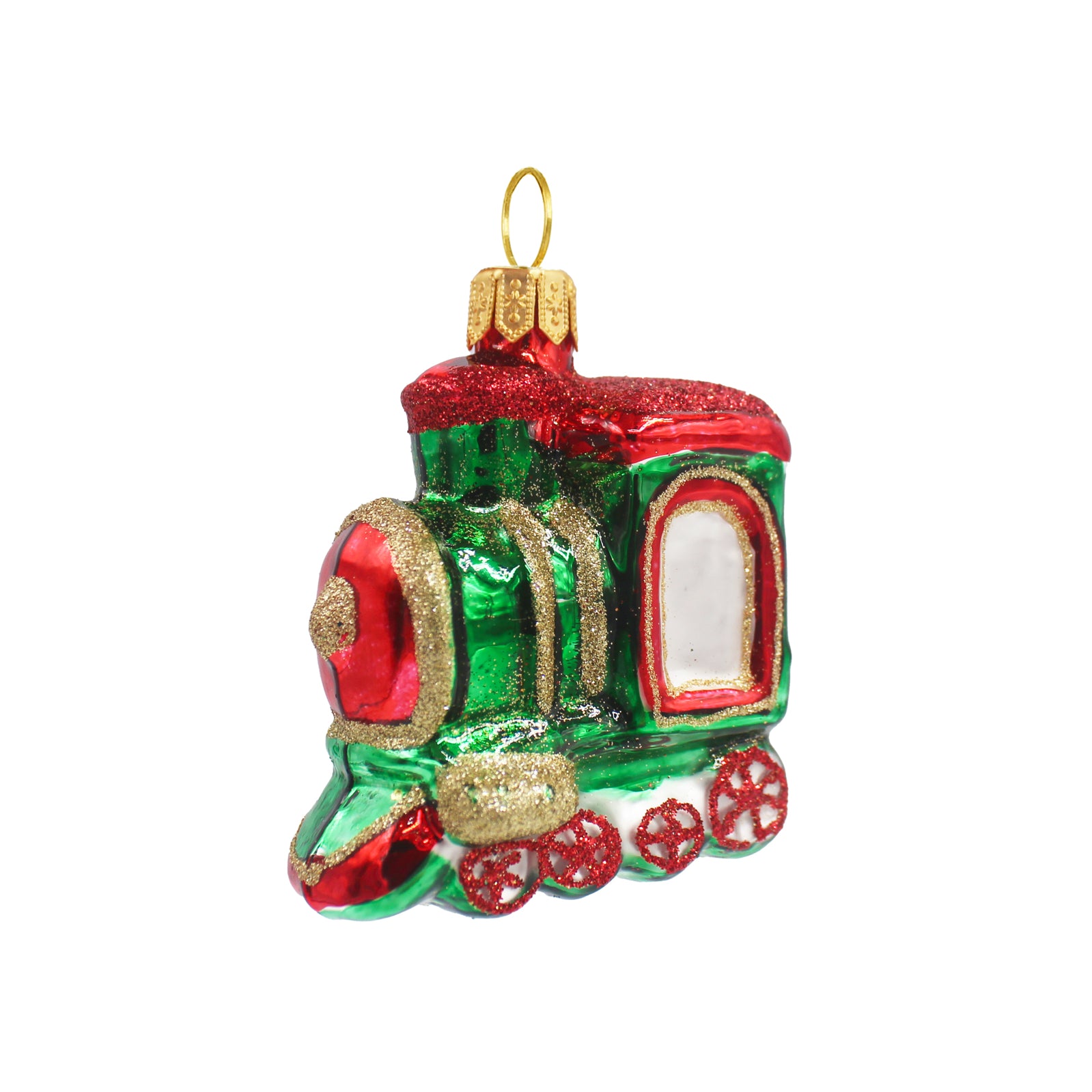 Petit train en verre soufflé – décoration de Noël en verre soufflé – vert et rouge – 6 cm