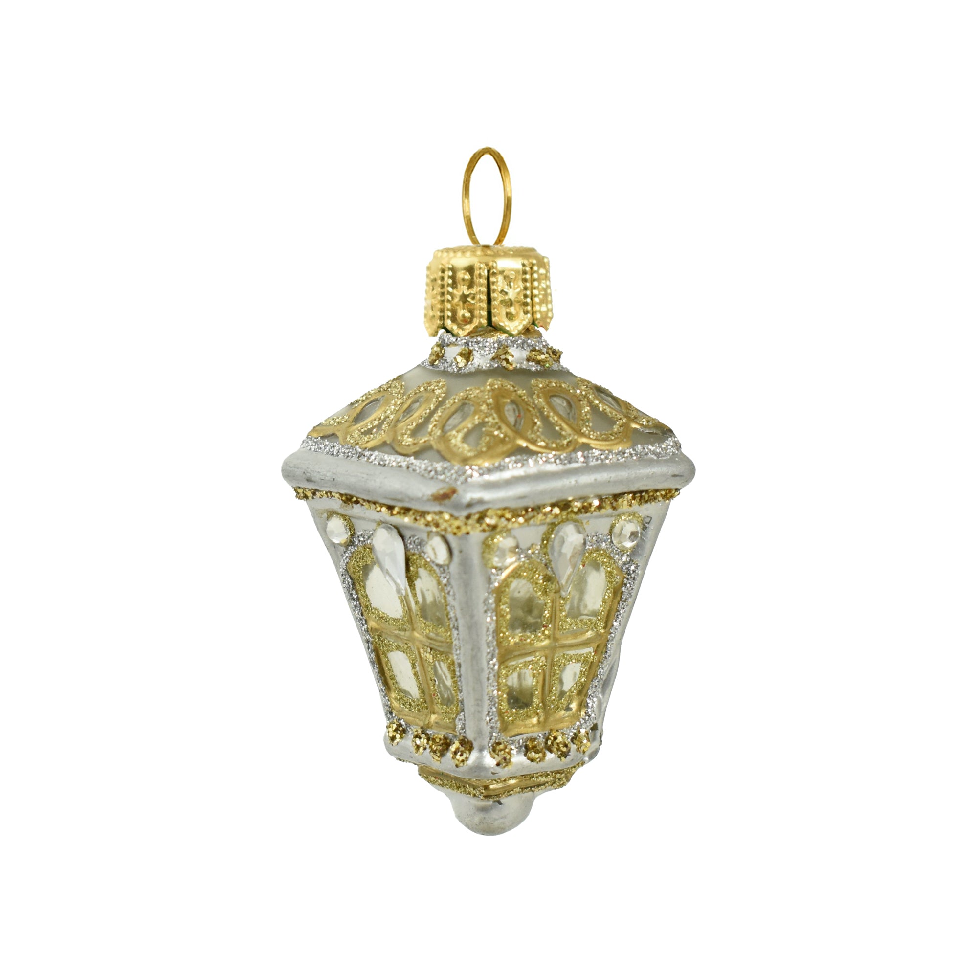 Petite lanterne en verre soufflé – décoration de Noël en verre soufflé – dorée et argentée – 6 cm