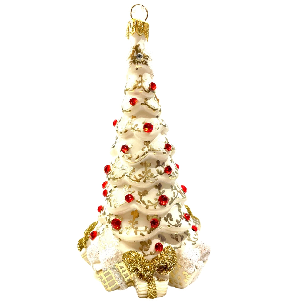 Sapin en verre soufflé – décoration de Noël en verre soufflé – blanc et doré – 13 cm