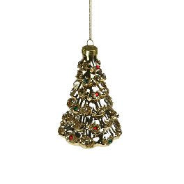 Sapin de Noël en verre à suspendre doré et vert 12 cm
