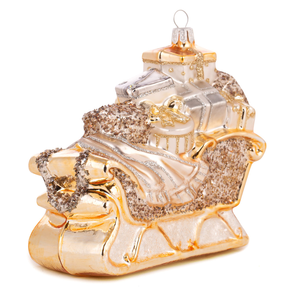 Cette décoration en verre soufflé représente le traîneau du Père Noël. C’est une belle décoration qui reflète le savoir-faire et la créativité de Huras Family. Elle vous fera voyager dans l’univers féerique de Noël. Elle est disponible en quantité limitée, alors n’attendez pas pour la commander sur notre site web !