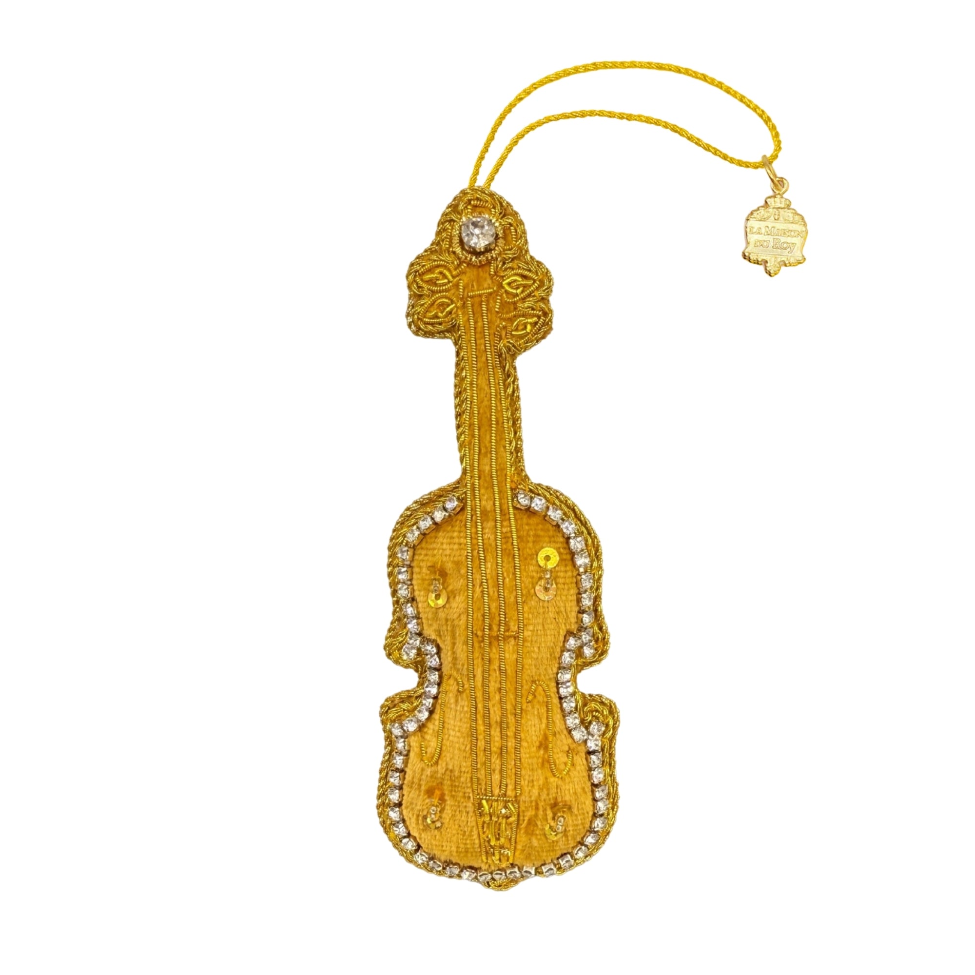 Création originale La Maison du Roy - Violon brodé à la main - Doré - 14 cm (sans le cordon)